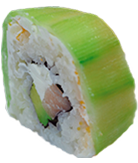 Envuelto en hoja de pepino, relleno de queso, aguacate e ingrediente a elegir